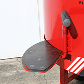 Spring-loaded door with guard - machine self-empties, no need for tipping or pouring from machine.